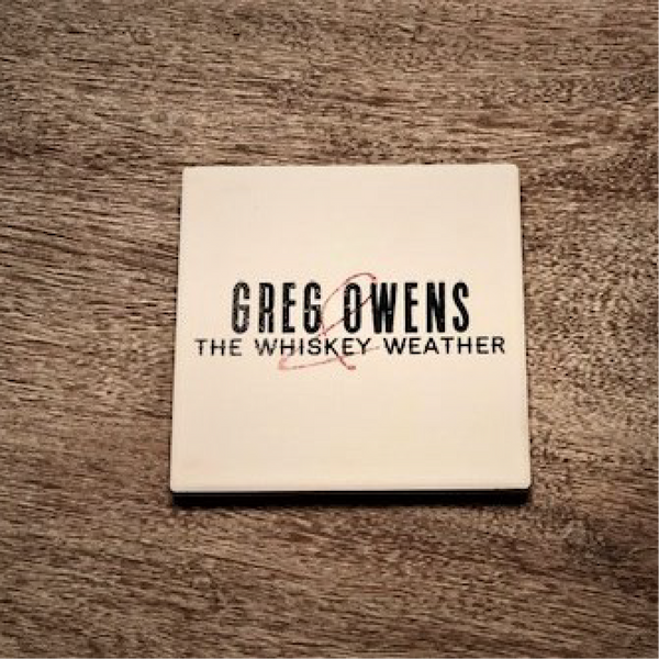 Enjoy a cold beverage and be kind to your furniture all while displaying your exceptional taste in music! Ceramic coaster with a cork backing featuring the Greg Owens and the Whiskey Weather logo in the center.