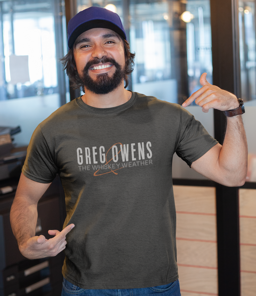Greg Owens and the Whiskey Weather logo on a grey heather tee. Super soft and stylish.